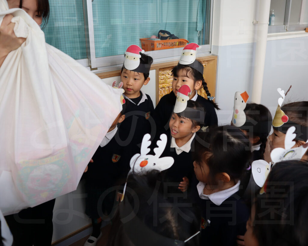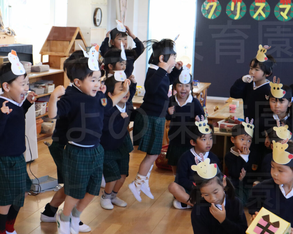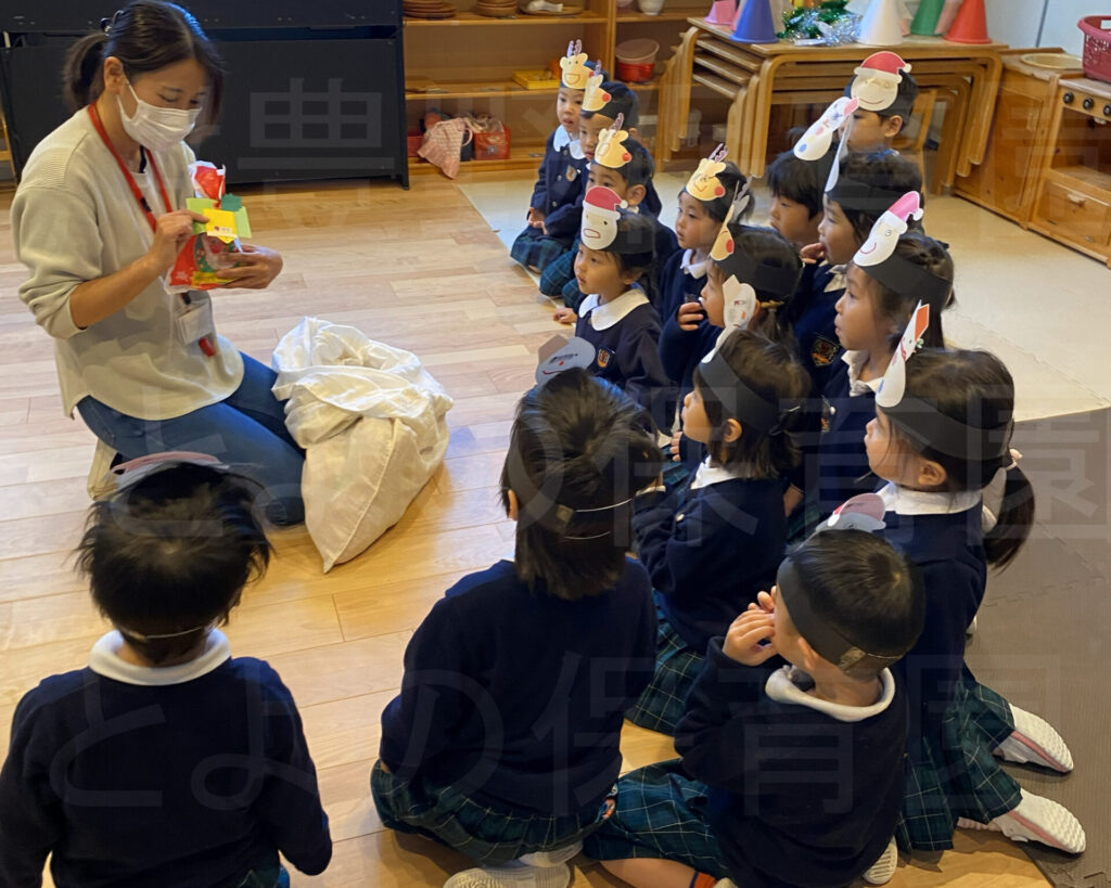 幼児クリスマス会:2025年12月18日 2025.12.24 豊野保育園ニュース速報です! サンタさんがやってきました! クリスマス会をしました。クリスマスゲームをしていると…、サンタさんが!プレゼントを置いて帰って行きましたよ。 動画はインスタでUPしています。是非ご覧ください。 お断り フォトギャラリーの写真掲載は、行事や日常の保育の様子をお伝えするもので、 掲載写真に偏りが生じてしまいます。 また、写真に薄く「とよの保育園」と入れているのは転載防止のためです。 ご理解のほどよろしくお願いいたします。 ▼ 豊野保育園 クリスマス会 とよの保育園 クリスマス会