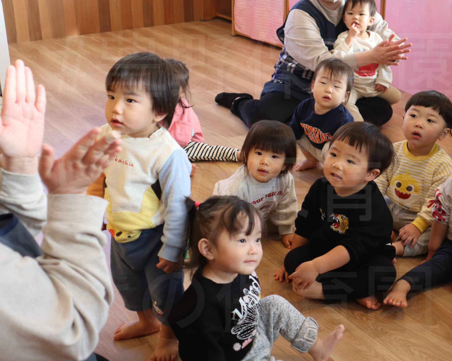 また、写真に薄く「とよの保育園」と入れているのは転載防止のためです。