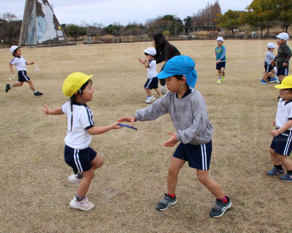 初めての3,4歳という異年齢児での散歩でしたが、公園まで上手に歩くことができました。